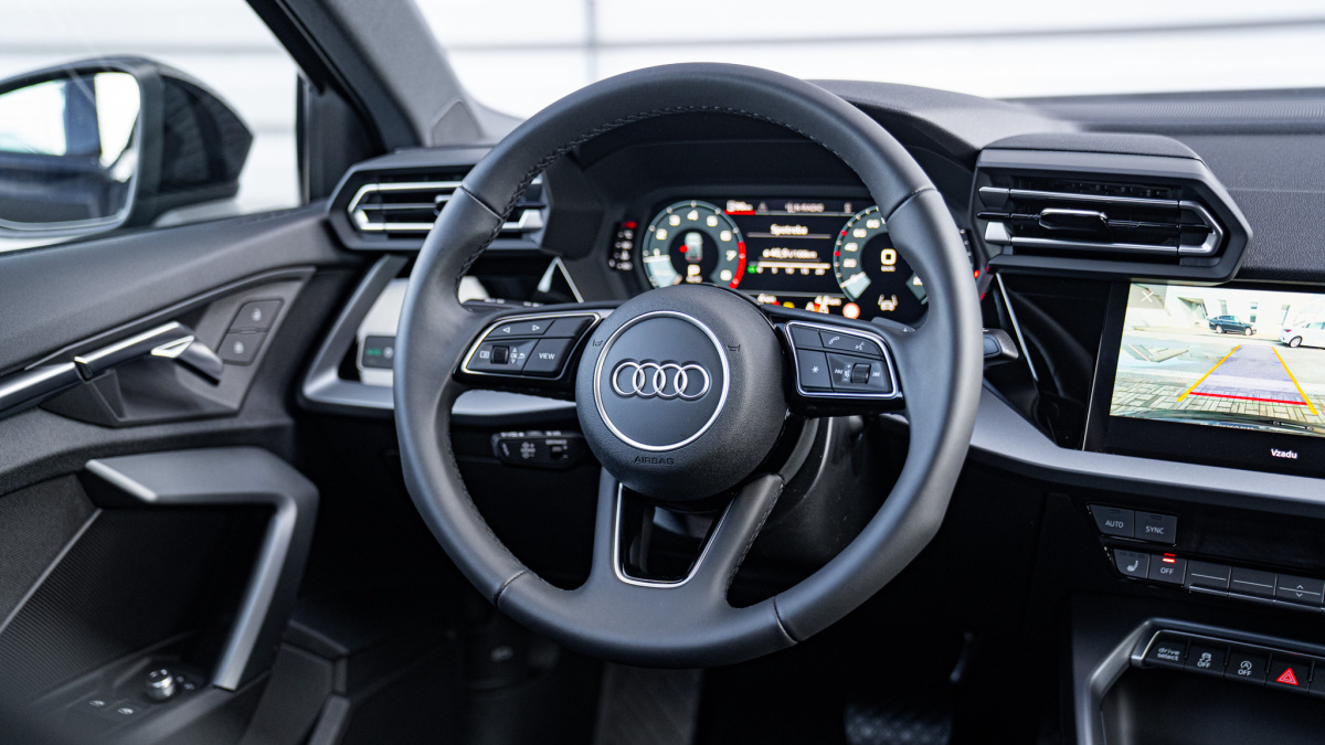 - Kožený volant 3-ramenný športový , multifunkčný s funkciou radenia
