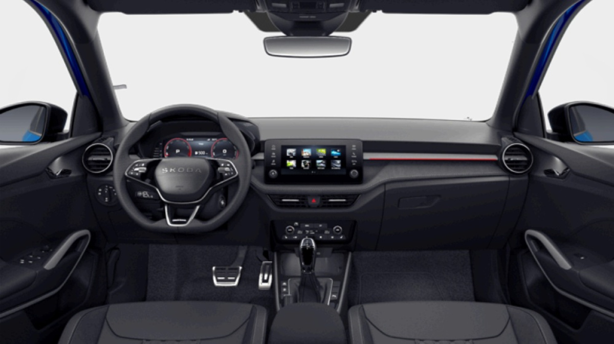 - Dynamic - športové látkové sedadlá, poťah prístrojovej dosky Látka Dynamic, Ambientné osvetlenie prepínateľné biela/červená, ozdobné kryty pedálov z ušľachtilej ocele, vkladané tkané koberce vpredu a vzadu, 3-ramenný športový kožený multifunkčný volant, chrómové orámovanie výduchov ventilácie,lakťová opierka vpredu s odkladacou schránkou Jumbo Box a výduchmi ventilácie pre cestujúcich vzadu, výškovo nastaviteľné sedadlo spolujzadca, manuálne nastaviteľné bedrové opierky, ele. ovládanie okien vzadu