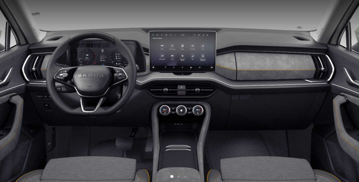 - Interiér Lounge - poťah sedadiel sivá látka/Artisyn, poťah prístrojovej dosky sivý Artisyn s dekoratívnym prešívaním v tvare písmena X, osvetelnie priestoru pre nohy vpredu a vzadu
