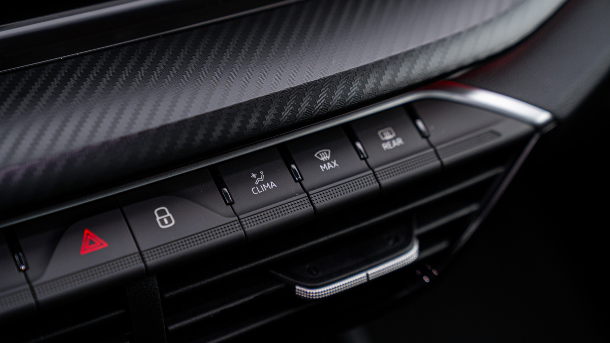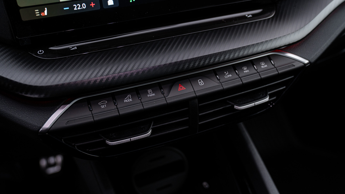 - Výškovo nastaviteľné a vyhrievané športové predné sedadlá s manuálne nastaviteľnými bedrovými opierkami