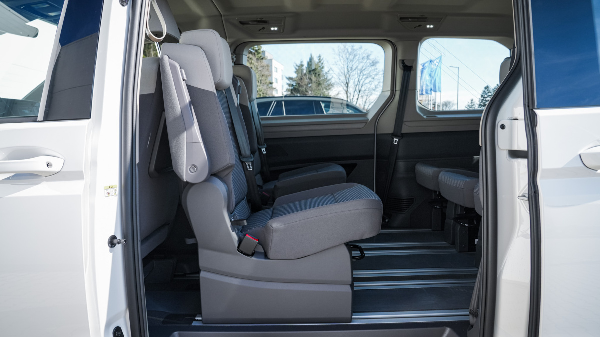 - 7 miestne prevedenie (2-2-3) - samostatné sedadlo vodiča a spolujazdca - 2 samostatné sedadlá proti smeru jazdy s integrovanými bezpečnostnými pásmi a lakťovými opierkami po oboch stanách v 2.rade sedadiel - 3 samostatné sedadlá v 3.rade sedadiel
