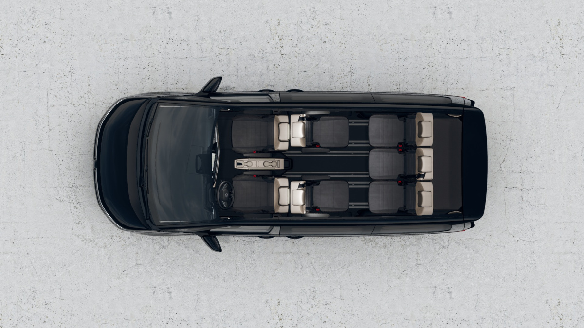 - 7 miestne prevedenie (2-2-3) - samostatné sedadlo vodiča a spolujazdca - 2 samostatné sedadlá proti smeru jazdy s integrovanými bezpečnostnými pásmi a lakťovými opierkami po oboch stanách v 2.rade sedadiel - 3 samostatné sedadlá v 3.rade sedadiel